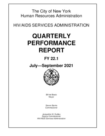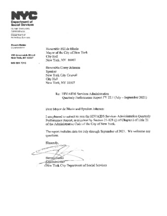 HIV/AIDS Services Administration (HASA) Quarterly Performance Report (FY 22.1 July—September 2021)