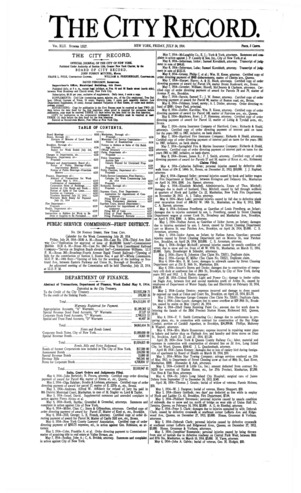The City Record newspaper publishes notices which includes but is not limited to: public hearings and meetings, public auctions and sales, solicitations and awards and official rules proposed and adopted by city agencies. This is the City Record Newspaper for July 24, 1914.