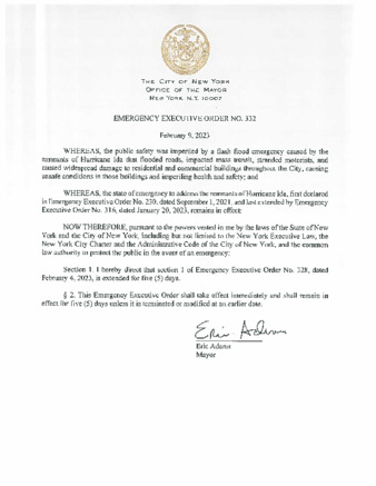 Emergency Executive Order No. 332, is being submitted to extend Emergency Executive Order No. 328, dated February 4, 2023, for five (5) days, if this relates to Hurricane Ida.