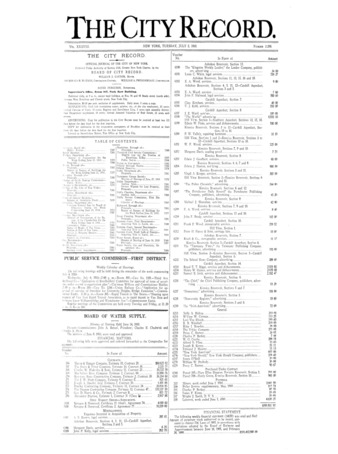 The City Record newspaper publishes notices which includes but is not limited to: public hearings and meetings, public auctions and sales, solicitations and awards and official rules proposed and adopted by city agencies. This is the City Record Newspaper for July 05, 1910 .