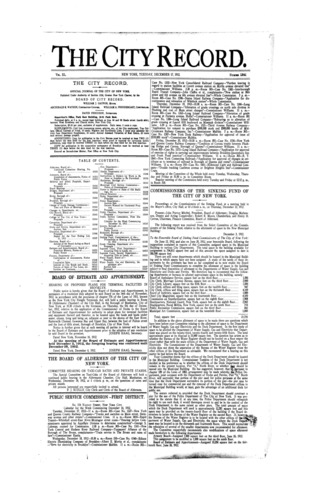 The City Record newspaper publishes notices which includes but is not limited to: public hearings and meetings, public auctions and sales, solicitations and awards and official rules proposed and adopted by city agencies. This is the City Record Newspaper for December 17, 1912.