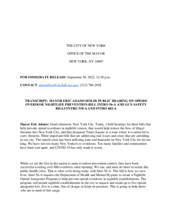 A transcript about New York City Mayor Eric Adams holding a public hearing on Opioid Overdose Nightlife Prevention Bill Intro 56-A and Gun Safety Bills Intro 518-A and intro 602-A.