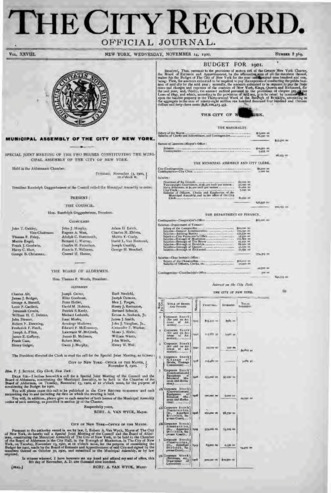 The City Record newspaper publishes notices which includes but is not limited to: public hearings and meetings, public auctions and sales, solicitations and awards and official rules proposed and adopted by city agencies. This is the City Record Newspaper for November 14, 1900.