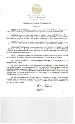 Emergency Executive Order No. 127, extends Emergency Executive Order No. 123, dated June 20, 2022, for five (5) days if this relates to Covid-19.