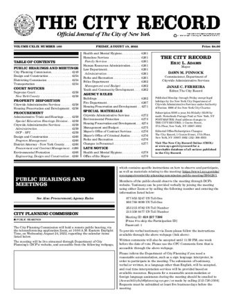 The City Record newspaper publishes notices which includes but is not limited to public hearings and meetings, public auctions and sales, solicitations and awards and official rules proposed and adopted by city agencies.