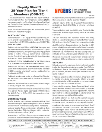 This brochure describes the benefits of the Deputy Sheriff 25-Year Plan (DSH-25 Plan). The DSH-25 Plan is available ONLY to members employed by the City of New York as Deputy Sheriff level one, Deputy City Sheriff level two, Supervising Deputy Sheriff, or Administrative Sheriff.