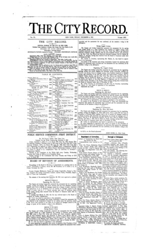The City Record newspaper publishes notices which includes but is not limited to: public hearings and meetings, public auctions and sales, solicitations and awards and official rules proposed and adopted by city agencies. This is the City Record Newspaper for December 06, 1912.