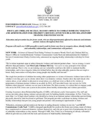 Mayor's Press Release: FIRST LADY CHIRLANE MCCRAY, MAYOR’S OFFICE TO COMBAT DOMESTIC VIOLENCE AND ADMINISTRATION FOR CHILDREN’S SERVICES ANNOUNCE HEAL