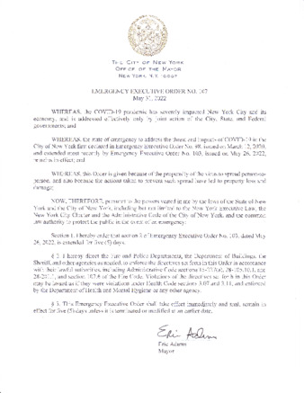 Emergency Executive Order No. 107, extends Emergency Executive Order No. 103, dated May 26, 2022, for five (5) days, if this relates to Covid-19.