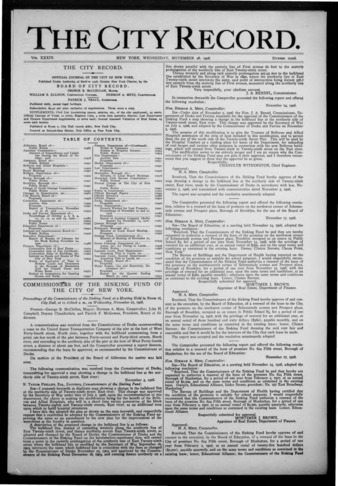 The City Record newspaper publishes notices which includes but is not limited to: public hearings and meetings, public auctions and sales, solicitations and awards and official rules proposed and adopted by city agencies. This is the City Record Newspaper for November 28, 1906.