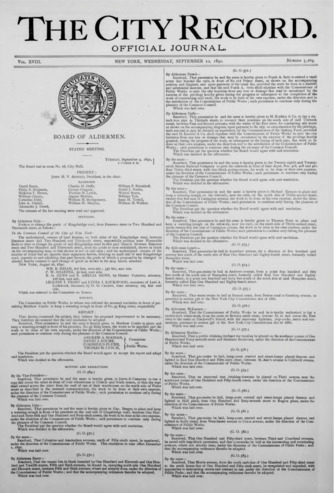 The City Record newspaper publishes notices which includes but is not limited to: public hearings and meetings, public auctions and sales, solicitations and awards and official rules proposed and adopted by city agencies. This is the City Record Newspaper for September 10, 1890.