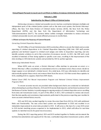 Addressing erroneous criminal and juvenile records involves coordination between multiple and independent parts of the criminal justice system pursuant to Local Law 21.