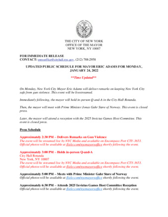 UPDATED PUBLIC SCHEDULE FOR MAYOR ERIC ADAMS FOR MONDAY, JANUARY 24, 2022