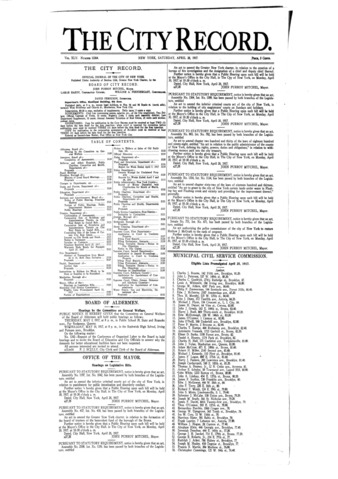 The City Record newspaper publishes notices which includes but is not limited to: public hearings and meetings, public auctions and sales, solicitations and awards and official rules proposed and adopted by city agencies. This is the City Record Newspaper for April 28, 1917.