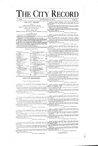 The City Record newspaper publishes notices which includes but is not limited to: public hearings and meetings, public auctions and sales, solicitations and awards and official rules proposed and adopted by city agencies. This is the City Record Newspaper for July 28, 1911.