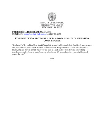 Mayor's Press Release: STATEMENT FROM MAYOR BILL DE BLASIO ON NEW STATE EDUCATION COMMISSIONER