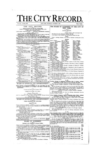 The City Record newspaper publishes notices which includes but is not limited to: public hearings and meetings, public auctions and sales, solicitations and awards and official rules proposed and adopted by city agencies. This is the City Record Newspaper for October 04, 1917.