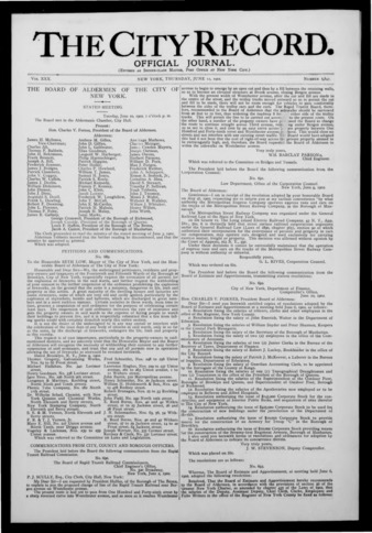 The City Record newspaper publishes notices which includes but is not limited to: public hearings and meetings, public auctions and sales, solicitations and awards and official rules proposed and adopted by city agencies. This is the City Record Newspaper for June 12, 1902.