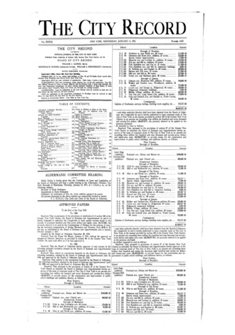 The City Record newspaper publishes notices which includes but is not limited to: public hearings and meetings, public auctions and sales, solicitations and awards and official rules proposed and adopted by city agencies. This is the City Record Newspaper for January 11, 1911.