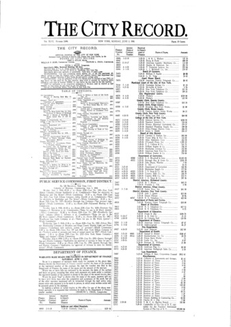 The City Record newspaper publishes notices which includes but is not limited to: public hearings and meetings, public auctions and sales, solicitations and awards and official rules proposed and adopted by city agencies. This is the City Record Newspaper for June 03, 1918.