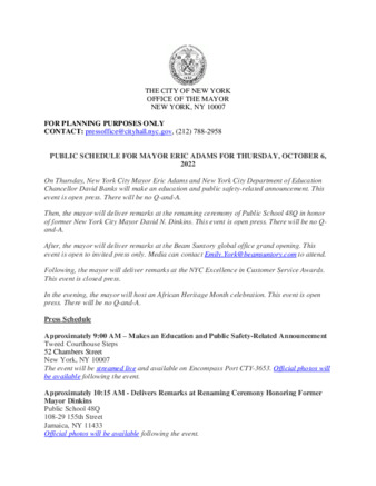 PUBLIC SCHEDULE FOR MAYOR ERIC ADAMS FOR THURSDAY, OCTOBER 6, 2022