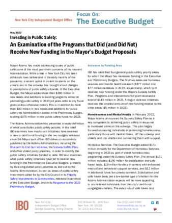 EXECUTIVE BUDGET FOCUS: Mayor Adams has made investing in public safety a top priority of his early administration. IBO examines what programs under this umbrella have received increases in funding in the Mayor’s first two budget proposals, as well as other programs that have not.