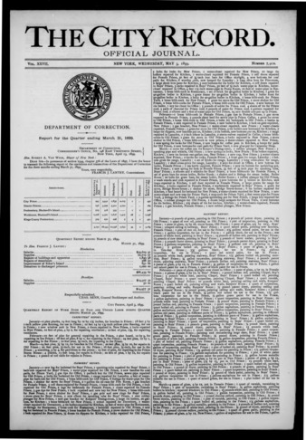 The City Record newspaper publishes notices which includes but is not limited to: public hearings and meetings, public auctions and sales, solicitations and awards and official rules proposed and adopted by city agencies. This is the City Record Newspaper for May 03, 1899.