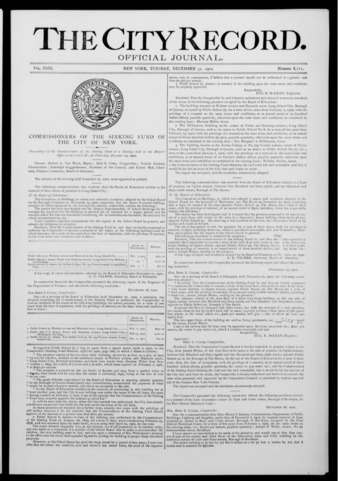 The City Record newspaper publishes notices which includes but is not limited to: public hearings and meetings, public auctions and sales, solicitations and awards and official rules proposed and adopted by city agencies. This is the City Record Newspaper for December 31, 1901.
