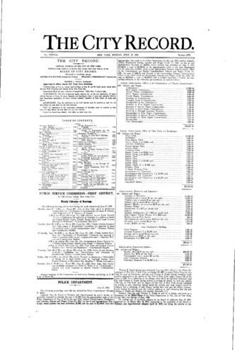 The City Record newspaper publishes notices which includes but is not limited to: public hearings and meetings, public auctions and sales, solicitations and awards and official rules proposed and adopted by city agencies. This is the City Record Newspaper for June 27, 1910.
