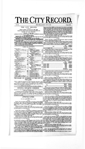 The City Record newspaper publishes notices which includes but is not limited to: public hearings and meetings, public auctions and sales, solicitations and awards and official rules proposed and adopted by city agencies. This is the City Record Newspaper for May 11, 1912.