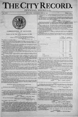 The City Record newspaper publishes notices which includes but is not limited to: public hearings and meetings, public auctions and sales, solicitations and awards and official rules proposed and adopted by city agencies. This is the City Record Newspaper for June 12, 1901.