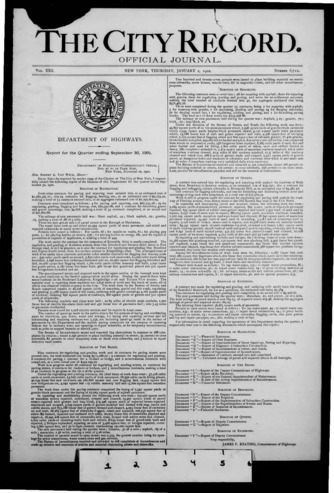 The City Record newspaper publishes notices which includes but is not limited to: public hearings and meetings, public auctions and sales, solicitations and awards and official rules proposed and adopted by city agencies. This is the City Record Newspaper for January 02, 1902.