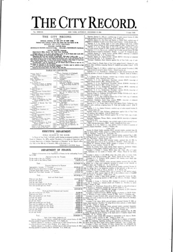 The City Record newspaper publishes notices which includes but is not limited to: public hearings and meetings, public auctions and sales, solicitations and awards and official rules proposed and adopted by city agencies. This is the City Record Newspaper for December 17, 1910.