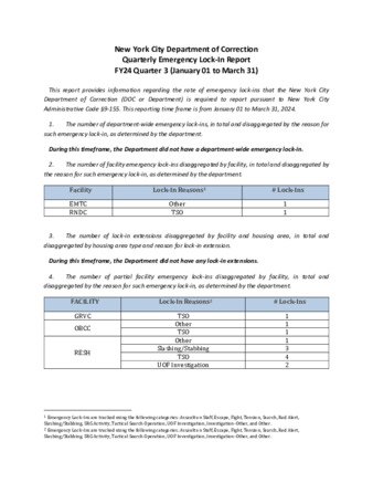 Quarterly Emergency Lock-In Report - FY2024 Q3