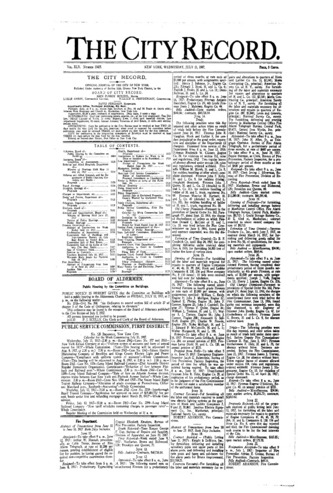 The City Record newspaper publishes notices which includes but is not limited to: public hearings and meetings, public auctions and sales, solicitations and awards and official rules proposed and adopted by city agencies. This is the City Record Newspaper for July 11, 1917.