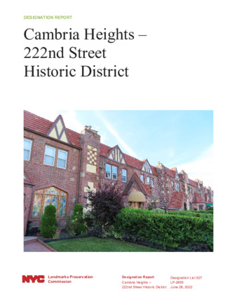 Framing 222nd Street between 115th Road and 116th Avenue in southeastern Queens, the Cambria Heights – 222nd Street Historic District is an architectural highlight of its neighborhood, an unusually cohesive, distinctive, and intact collection of 46 houses built in the Storybook style in 1931.
