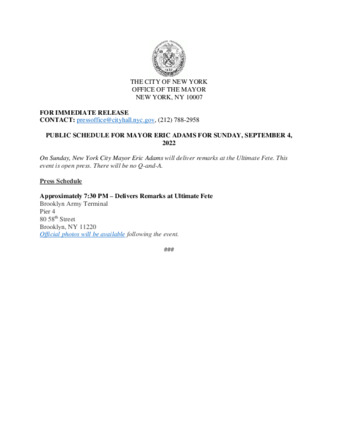 PUBLIC SCHEDULE FOR MAYOR ERIC ADAMS FOR SUNDAY, SEPTEMBER 4, 2022