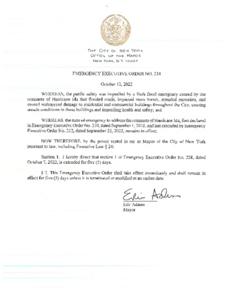 Emergency Executive Order No. 234, will extend Emergency Executive Order No. 228, dated, October 7, 2022, for five (5) days, if this relates to Hurricane Ida.