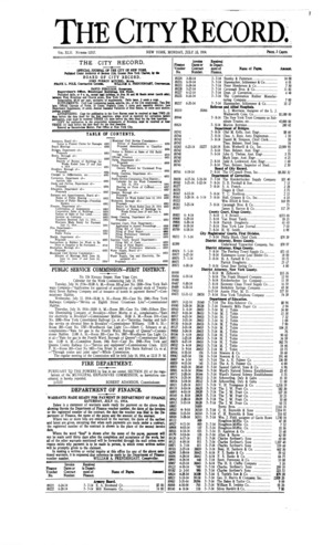 The City Record newspaper publishes notices which includes but is not limited to: public hearings and meetings, public auctions and sales, solicitations and awards and official rules proposed and adopted by city agencies. This is the City Record Newspaper for July 13, 1914.