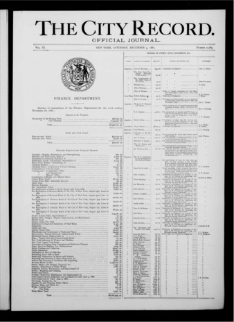 The City Record newspaper publishes notices which includes but is not limited to: public hearings and meetings, public auctions and sales, solicitations and awards and official rules proposed and adopted by city agencies. This is the City Record Newspaper for December 03, 1881.