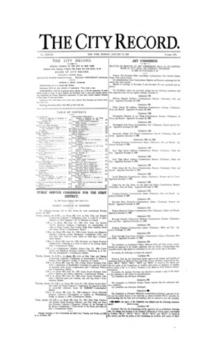 The City Record newspaper publishes notices which includes but is not limited to: public hearings and meetings, public auctions and sales, solicitations and awards and official rules proposed and adopted by city agencies. This is the City Record Newspaper for January 10, 1910.