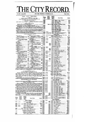 The City Record newspaper publishes notices which includes but is not limited to: public hearings and meetings, public auctions and sales, solicitations and awards and official rules proposed and adopted by city agencies. This is the City Record Newspaper for November 28, 1917.