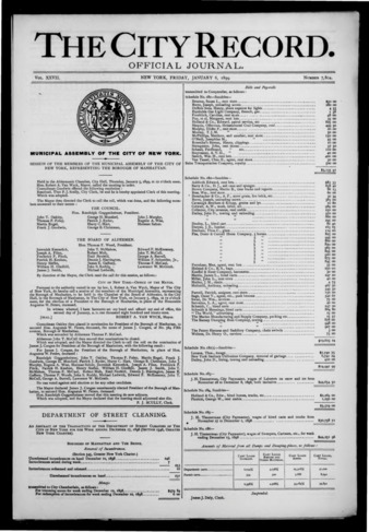 The City Record newspaper publishes notices which includes but is not limited to: public hearings and meetings, public auctions and sales, solicitations and awards and official rules proposed and adopted by city agencies. This is the City Record Newspaper for January 06, 1899.
