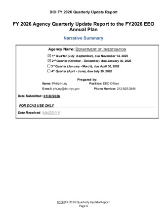 - FY 2026 Quarterly Update report to the FY 2026 EEO Annual Plan