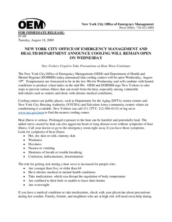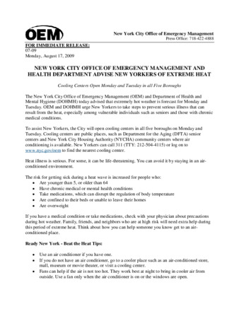 - NEW YORK CITY OFFICE OF EMERGENCY MANAGEMENT AND HEALTH DEPARTMENT ADVISE NEW YORKERS OF EXTREME HEAT