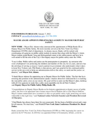 MAYOR ADAMS APPOINTS PHILIP BANKS AS DEPUTY MAYOR FOR PUBLIC SAFETY