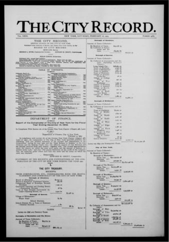 The City Record newspaper publishes notices which includes but is not limited to: public hearings and meetings, public auctions and sales, solicitations and awards and official rules proposed and adopted by city agencies. This is the City Record Newspaper for February 28, 1903.
