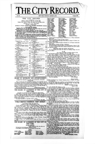 The City Record newspaper publishes notices which includes but is not limited to: public hearings and meetings, public auctions and sales, solicitations and awards and official rules proposed and adopted by city agencies. This is the City Record Newspaper for March 21, 1912.