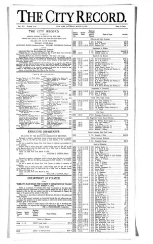 The City Record newspaper publishes notices which includes but is not limited to: public hearings and meetings, public auctions and sales, solicitations and awards and official rules proposed and adopted by city agencies. This is the City Record Newspaper for March 15, 1913.
