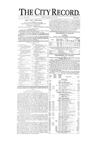 The City Record newspaper publishes notices which includes but is not limited to: public hearings and meetings, public auctions and sales, solicitations and awards and official rules proposed and adopted by city agencies. This is the City Record Newspaper for June 24, 1917.